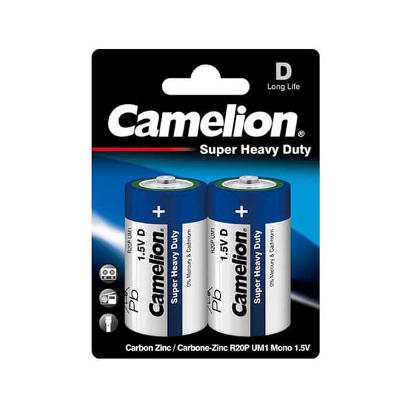 باتری بزرگ سوپر انرژی کملیون 2 عددی از نوع باتری های سلولی خشک است که با قوطی فولادی بسته شده و قسمت بیرونی بخش داخلی آنها با کربن زینک پر شده است. این باتریها معمولاً در پخشکننده های صوتی، رادیو، اسباب بازی و چراغ قوهها استفاده میشوند.