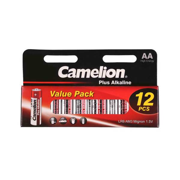 پک باتری قلمی پلاس آلکالاین کملیون 12 عددی از نوع باتری های سلولی خشک است که از آند روی و کاتد دی اکسید منگنز تشکیل شده است. باتری آلکالین با قوطی فولادی بسته شده و قسمت بیرونی بخش داخلی آنها با دی اکسید منگنز پر شده است. الکترولیت روی و هیدروکسید پتاسیم در مرکز باتری وجود دارد. باتریهای آلکالین نسبت به سایر باتریها چگالی بالاتری دارند. این باتریها معمولاً در پخشکننده های صوتی، رادیو، اسباب بازی و چراغ قوهها استفاده میشوند.