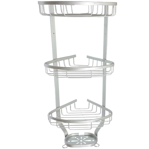 ۳ طبقه مجزا با ارتفاع مناسب برای قرار دادن انواع شامپو، صابون، ژل، لیف و سایر لوازم بهداشتی دارد و برای تخلیه سریع آب و جلوگیری از تجمع رطوبت کف طبقات سوراخ دار است.