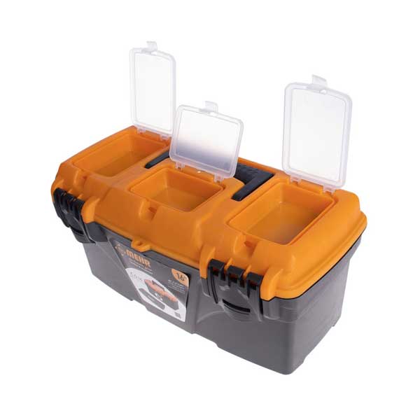 ابعاد کلی این جعبه ابزار 41x21x20 سانتی متر و وزن آن ۹۰۰ گرم است. مجهز به دو قفل پلاستیکی محکم است. ۱۰ محفظه جداگانه برای نگهداری انواع ابزار در این جعبه تعبیه شده است که شامل یک سینی قابل حمل با ۶ قفسه به عمق ۳.۵ سانتی متر و ۳ محفظه در دار کوچک با عمق ۲.۵ سانتی متر میباشد. همچنین، امکان نصب قفل اضافه بر روی درب جعبه وجود دارد.