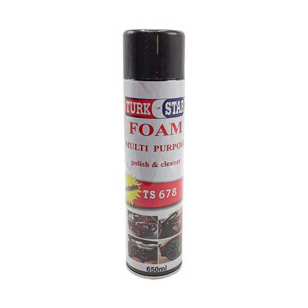 اسپری فوم چند منظوره ترک استار کد TS 678 یک اسپری کف تمیز کننده و براق کننده است و برای تمیز کردن و پولیش کاری سطوح چرمی، لاستیک، داشبورد، قطعات پلاستیکی داخل و خارج خودرو کاربرد دارد. اسپری کف چند کاره ترک استار به سطح نفوذ کرده، باعث جلا و براقیت سطح شده و از سطح در برابر عواملی که باعث ایجاد ترک، کهنگی و کدر شدن رنگ می شوند جلوگیری می کند. سرعت عملکرد بالا، دوام و ماندگاری طولانی و رایحه مطبوع از دیگر خصوصیات بارز این اسپری فوم محسوب می شوند.