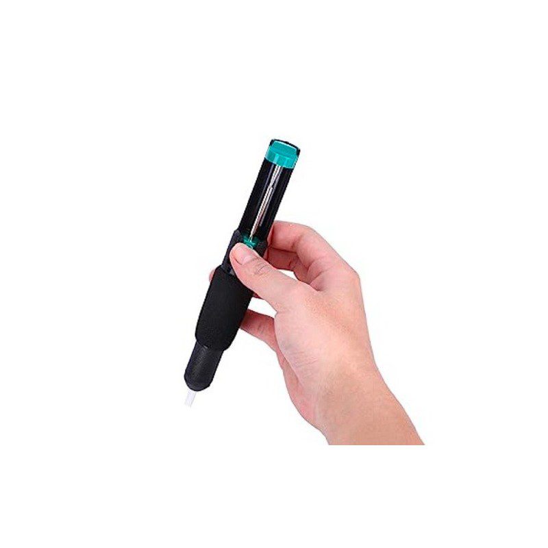 جهت استفاده از این قلع کش ابتدا دسته ی قلع کش را به سمت داخل فشار دهید تا قفل شود سپس نوک قلع کش را روی قلع مذاب شده قرار دهید و دکمه ی روی قلع کش را فشار دهید تا مکش انجام گیرد .