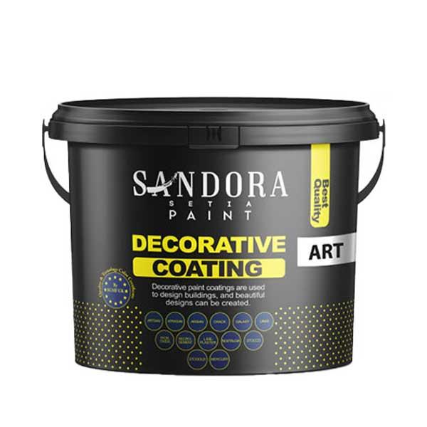 رنگ دکوراتیو آرت سان ساندورا از جمله رنگ های دکوراتیو یا تزئینی است و به دلیل قابلیتهایی که در زیبا سازی محیط دارد و نیز سهولت استفاده، از محبوبیت خاصی نزد هنرمندان و طراحان دکوراسیون برخوردار است. این رنگ پایه آب به عنوان یک لایه نهایی تزئینی روی سطوح داخلی ساختمان اجرا می شود و دارای افکت ویژه رنگین کمانی با سطحی برجسته و ظاهری ابریشمی و رنگدانههای فلزی درخشان است. این رنگ برای خلق یک فضای کلاسیک و مدرن فوق العاده است.