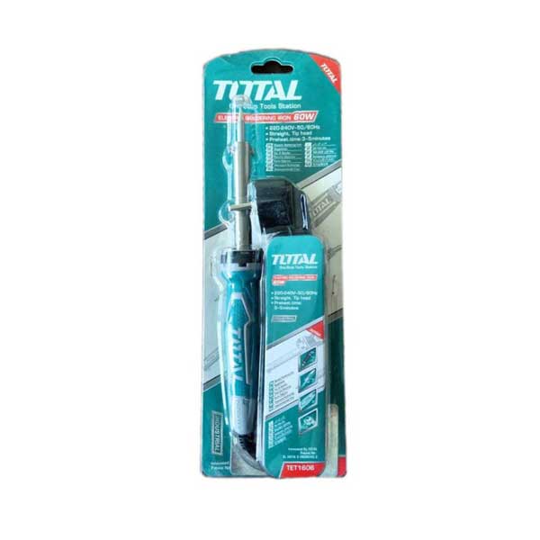 هویه برقی ۶۰ وات توتال مدل TET160831 یک ابزار حرفه ای برای لحیم کاری و اتصال یا جداسازی قطعات الکترونیکی است. این هویه با تولید حرارت بالا و مکانیزم ذوب کردن، دو قطعه کاری فلزی را با کمک سیم لحیم (قلع) به یکدیگر وصل میکند و در تعمیرات انواع قطعات لوازم دیجیتالی و الکترونیکی، لحیم کاری و نصب قطعات الکترونیکی مثل دیود، ترانزیستور، مقاومت، خازن و غیره، قلع کشی پایه ها و شل کردن قلع و جدا کردن قطعات از قبل لحیم شده به بردهای الکترونیکی کاربرد فراوانی دارد.