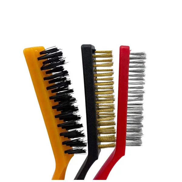 جنس بدنه ست فرچه سیمی مسواکی ۳ عددی از پلاستیک مستحکم است که به خوبی در دست جای می گیرد و از خستگی دستان در حین کار جلوگیری می کند.