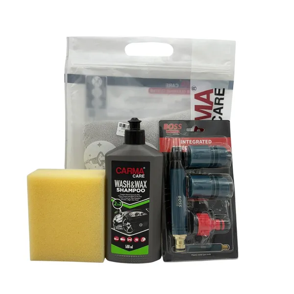 پکیج کارواش خانگی ZPS1501 شامل محصولات و ابزارهایی است که برای شستشو و آبکشی خودرو و سایر سطوح مناسب است.